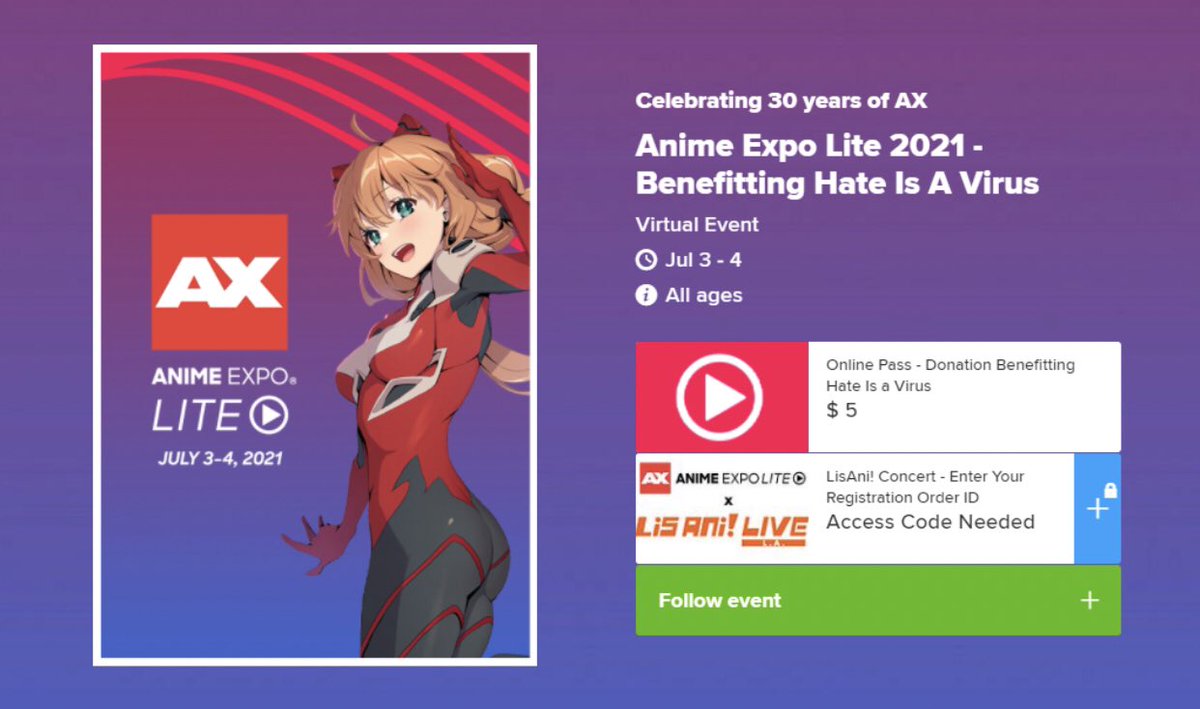 Tickets to access this years Anime Expo Lite programming are 5 each with all proceeds benefiting the Hate Is A Virus commUNITY Action Fund. Sponsored Catch the legendary Larry Hama talk Snake Eyes at Anime Expo Lite. The access price was 5 plus ticketing fees which went to the charity Hate Is A Virus While nothing can compare to the stressful exhilaration of being at a convention in person there is something to be said for having the chance to watch any panel you want without waiting in line getting up at the crack of dawn or paying for parking.